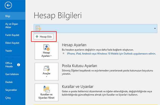 Outlook kurulum adımlarına aşağıda görseller ile anlatılmıştır.